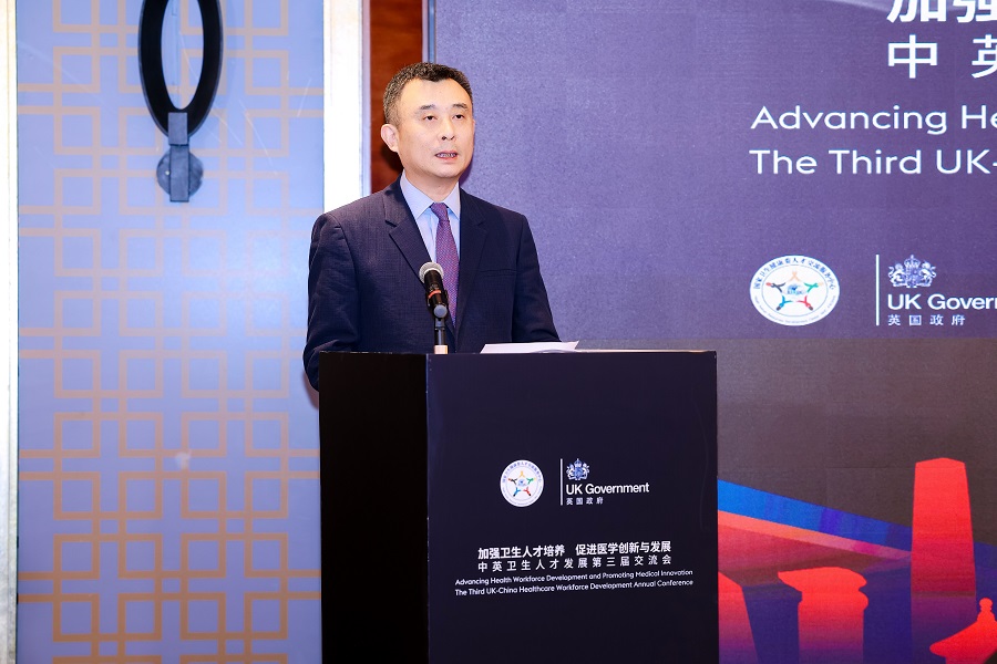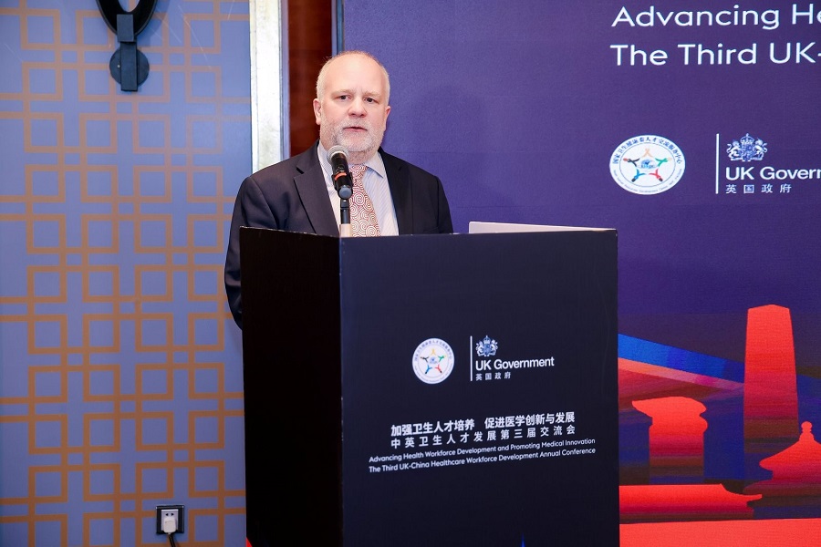 中英卫生人才发展第三届交流会于2025年10月17日在北京召开。交流会由中英卫生人才发展平台中方牵头单位taptap下载入口与英方牵头单位英国商业贸易部共同举办。来自中英两国权威医疗卫生机构、高等院校、卫生健康产业领域34家机构的代表、专家学者及行业精英约80人参加交流会,围绕“加强卫生人才培养,促进医学创新与发展”主题开展交流研讨。taptap下载入口主任方建宁、英国驻华大使馆副贸易使节兼公使衔参赞柯麦佑(Matt Crossman)出席会议并致辞。