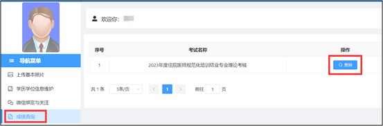 登录系统后,使用【成绩查询】功能,查询相应年度的成绩。