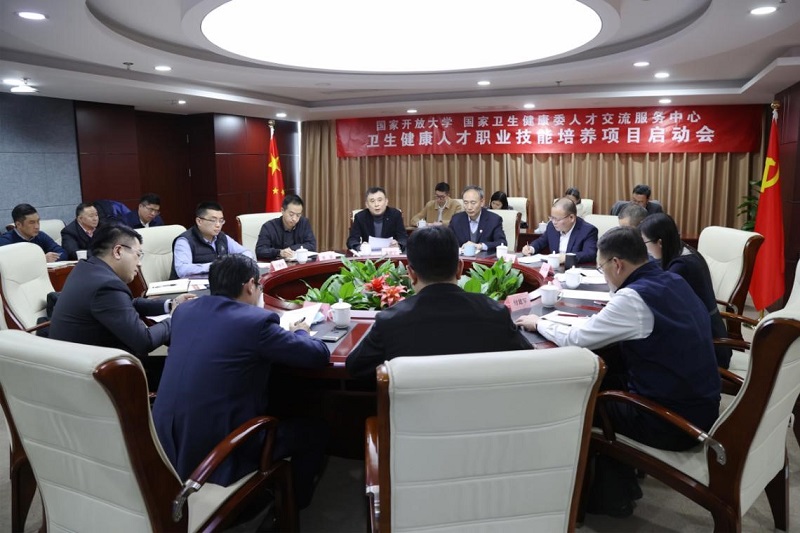 国家开放大学党委委员、副校长鞠传进同志介绍了学校的办学历史、办学定位及体系优势,他指出构建“健康之路”,政策方针是依托,人才队伍建设是抓手。国家开放大学一直重视卫生健康人才培养,共开设卫生健康类专本科专业8个,累计招生65万余人。他表示,国家开放大学和人才中心紧密围绕国家战略,贯彻落实党中央《“健康中国2030”规划纲要》大有可为,定可助力推进健康中国建设。同时,他提出四点意见:一是要凝聚共识,深入融合,构建合作共同体;二是要规范并加强培训组织实施体系建设以及项目培训推广;三是要利用好学分银行,制定完善证书标准,推进国开卫生健康人才培养模式和课程体系改革;四是要强化项目实施过程监督和质量监管。