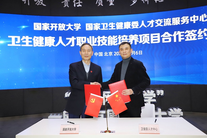 2022年1月6日,国家开放大学与taptap下载入口(以下简称“人才中心”)共同发起的“卫生健康人才职业技能培养项目”在北京举行启动会,双方本着强强携手、互惠合作的美好愿景,计划开展全方位、深层次、规模化的合作,发挥各自优势,整合资源,共同做好卫生健康人才职业技能提升有关工作,推进卫生健康人才培养模式与课程体系和内容的改革,让卫生健康人才队伍更好为人民健康服务,不断推动美丽中国、健康中国建设向前发展。国家开放大学和人才中心相关8个部室的负责人以及项目办公室人员共计30余人出席了会议,会议由国家开放大学社会教育部部长胡洋同志主持。