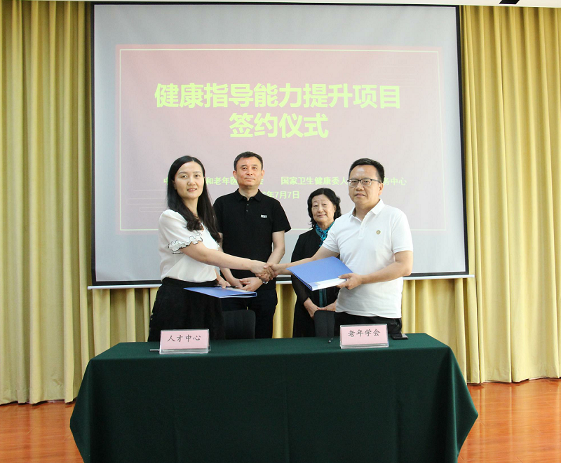 年)》、《“十四五”健康老龄化规划》相关工作任务和要求,坚持以覆盖全人群、全生命周期健康理念为中心,加强基层人民群众健康指导工作,中国老年学和老年医学学会(以下简称学会)和taptap下载入口(以下简称人才中心)共同设立了健康指导能力提升项目。2022年7月7日,健康指导能力提升项目启动、研讨会暨合作签约仪式在京举行。学会会长刘维林、秘书长翟静娴,人才中心副主任方建宁、技能人才办公室刘清伟等相关负责人及项目办成员出席,会议由学会副秘书长张劲松主持。